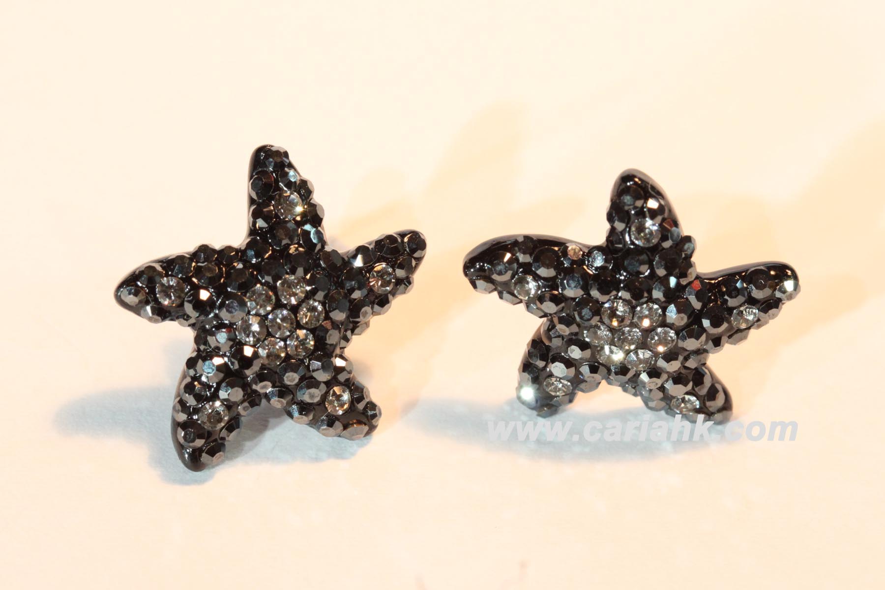 Star stud earring with black and grey crystal -effect stones