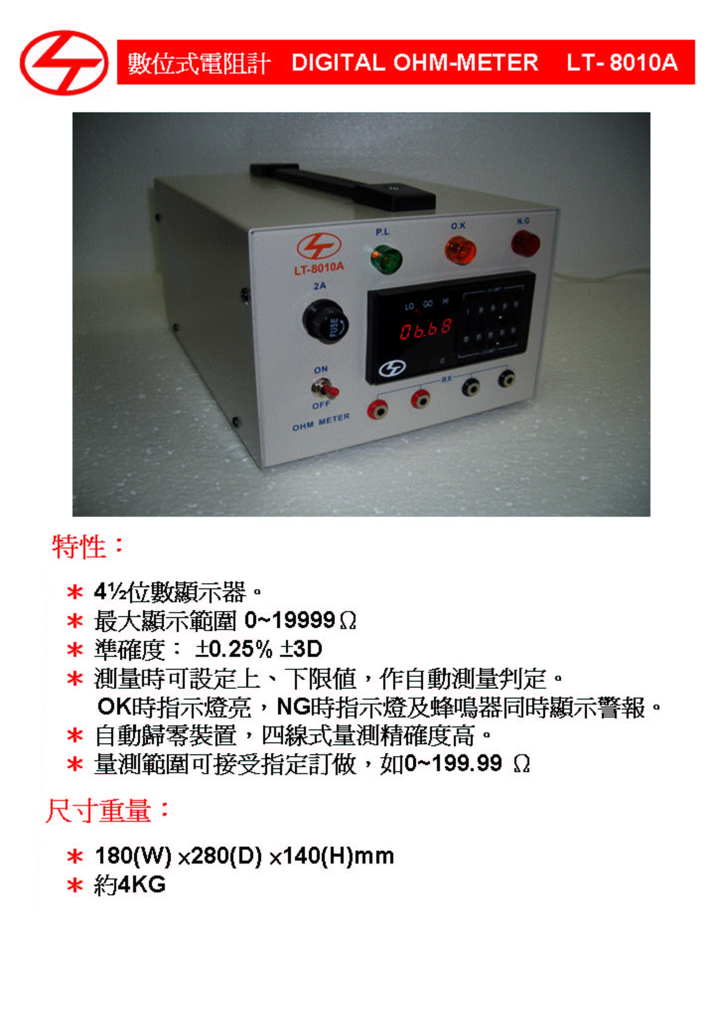Product Name : 數位式電阻器 Digital OHM Meter - LT-8010A