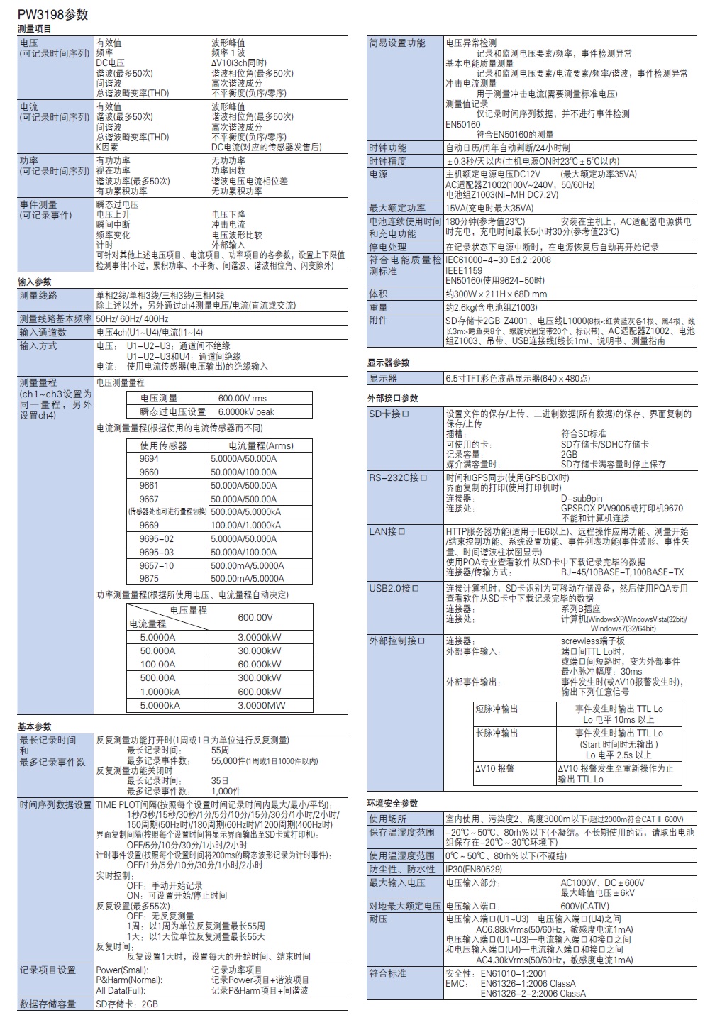 PW3198主机无法单独测量电压。需要另外购买用于电流、功率测量的前世传感器。若需要用计算机分析保存在SD卡中的测量数据并制作报告,需要另外购买软件9624-50。