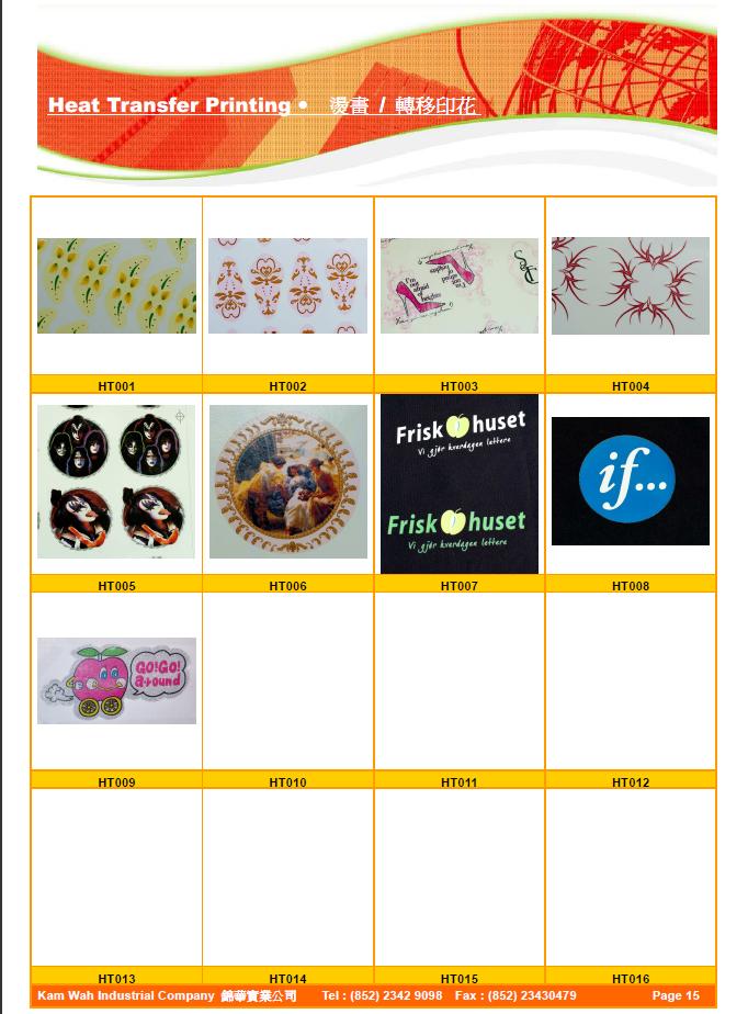 Product Name : Heat Transfer Printing 燙畫/轉移印花