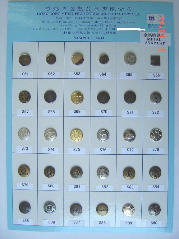 Contact Details : 香港五金製品廠有限公司 Hong Kong Metal Products Mfy. Ltd . . . . .東莞市駿雅鈕扣有限公司 Dong Guan Junya Matel Button Co., Ltd.