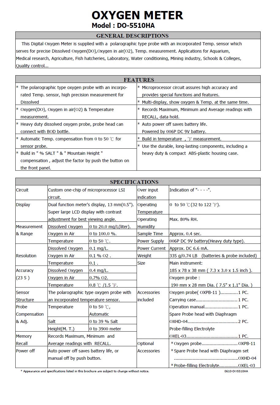 Product Name : | OXYGEN METER - DO-5510HA 溶氧分析儀 |