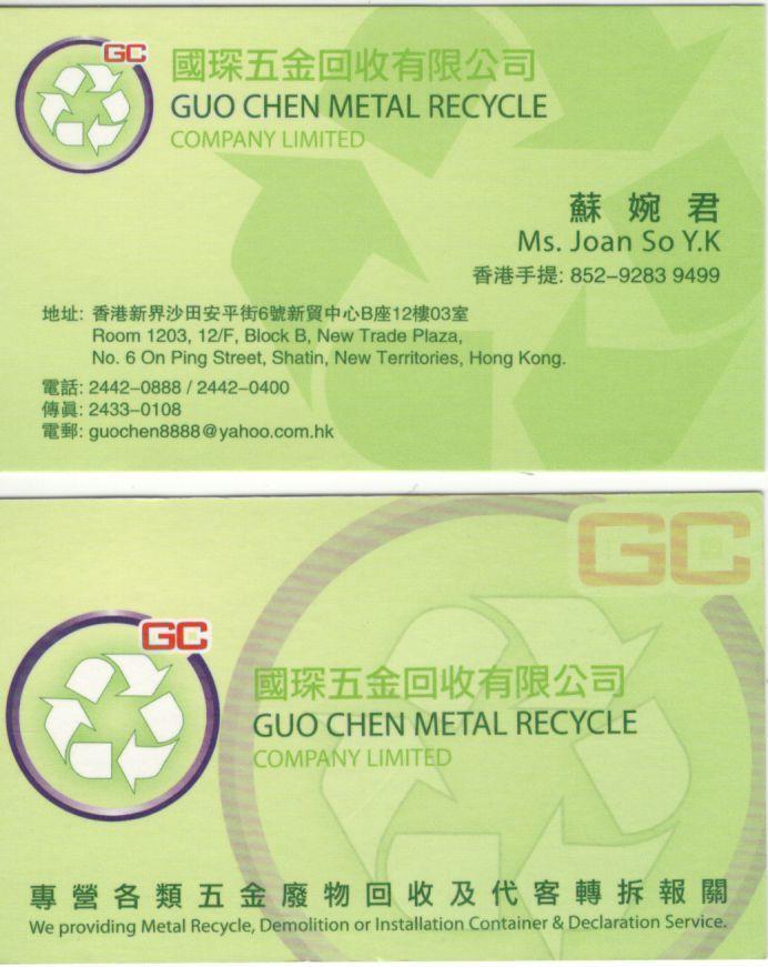 Contact Details : GUO CHEN METAL RECYCLE CO., LTD. 國琛五金回收有限公司