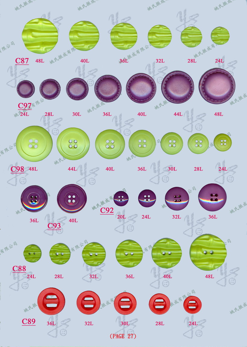 PC97   24L, 28L, 30L, 36L, 40L, 44L , 48L & 50L Nylon Button with immitation (spray)effect   尼龍仿皮鈕-噴油後之效果
