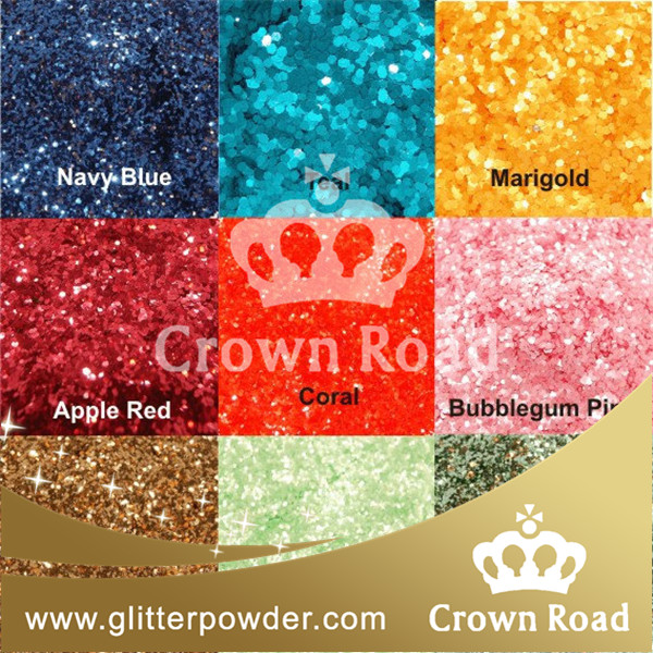 "Crownroad" Glitter power  is formed by imported PET film treated by vacuum plating, high temperature coloring, machinery precise cutting in order.